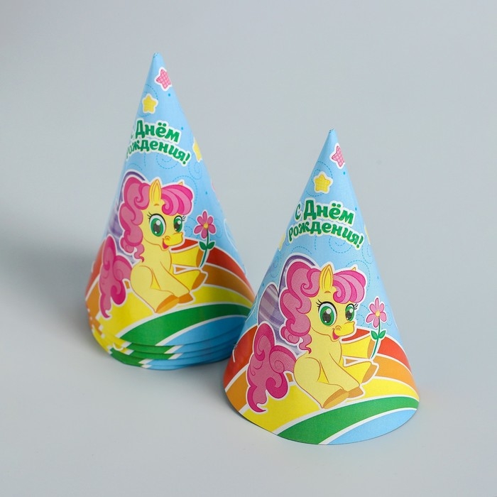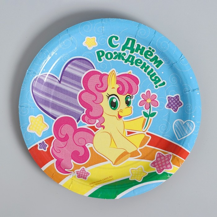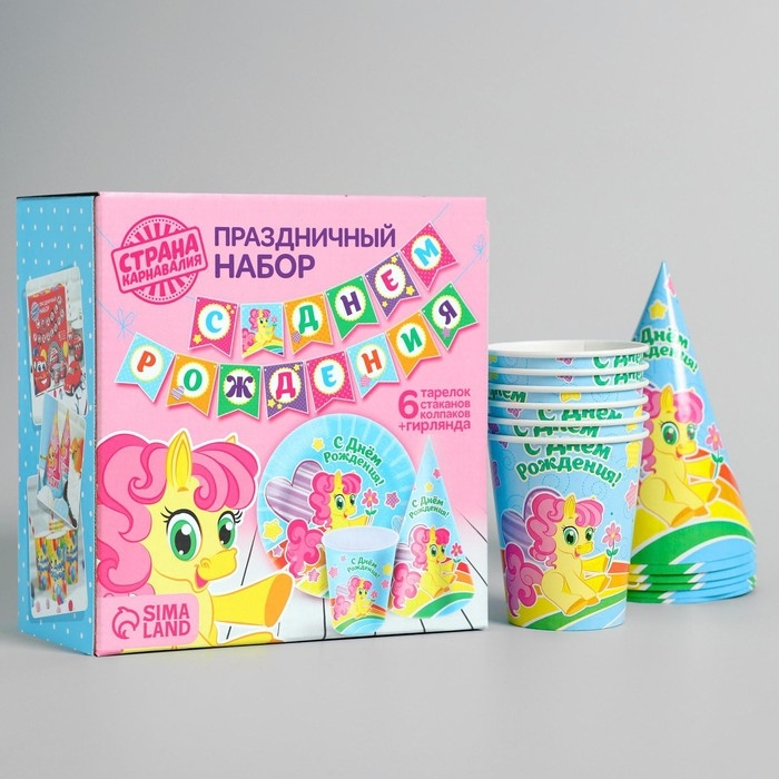 Набор бумажной посуды одноразовый С днём рождения», пони: 6 тарелок, 6 стаканов, 6 колпаков, 1 гирлянда