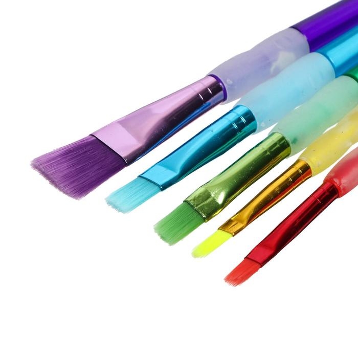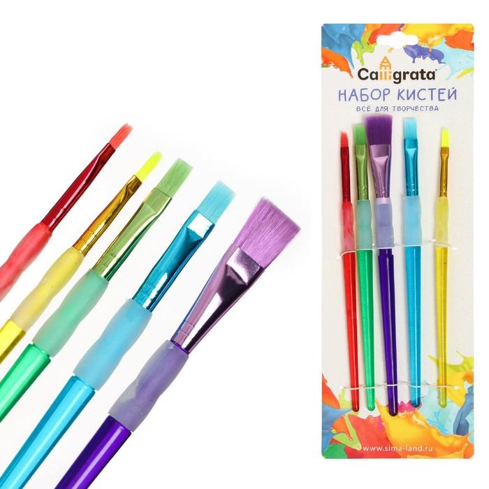Набор кистей нейлон 5 штук, с цветными ручками, с резиновыми держателями