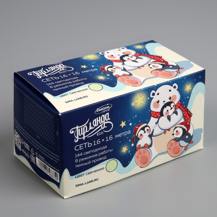 Гирлянда «Сеть» 1.6 × 1.6 м, IP20, тёмная нить, 144 LED, свечение тёплое белое, 8 режимов, 220 В