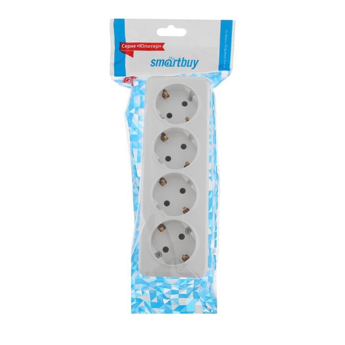 Розетка Smartbuy "Юпитер", 16 А, четырехместная, открытая, с з/к, белая