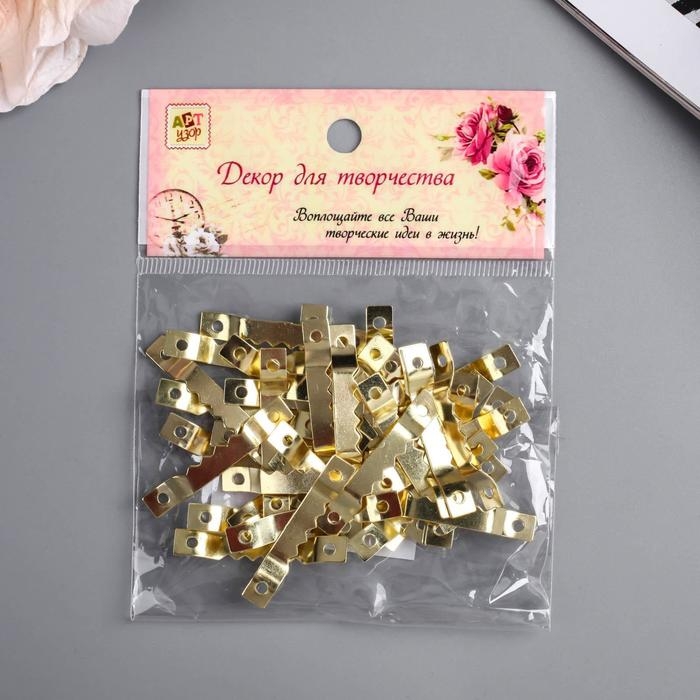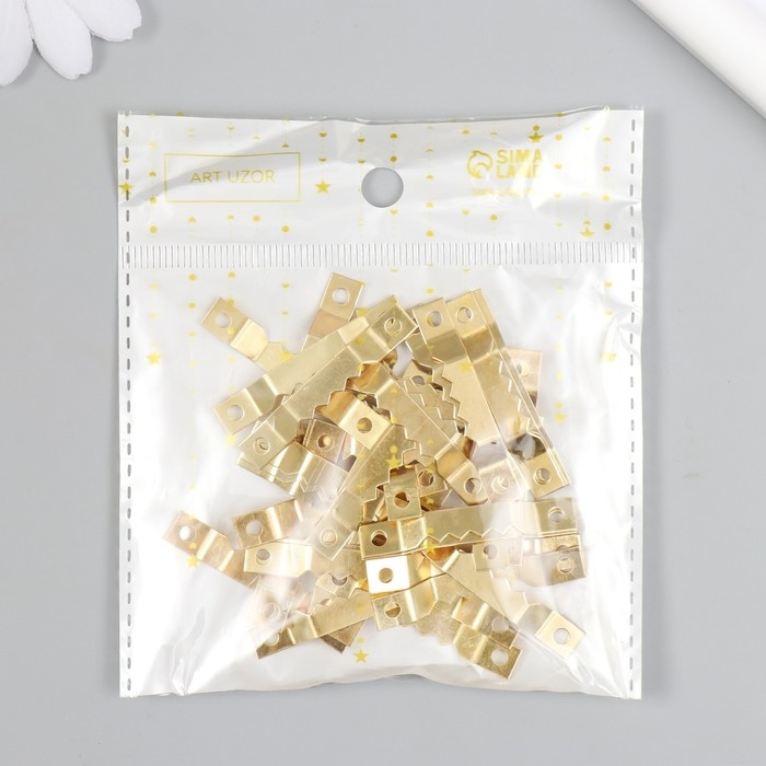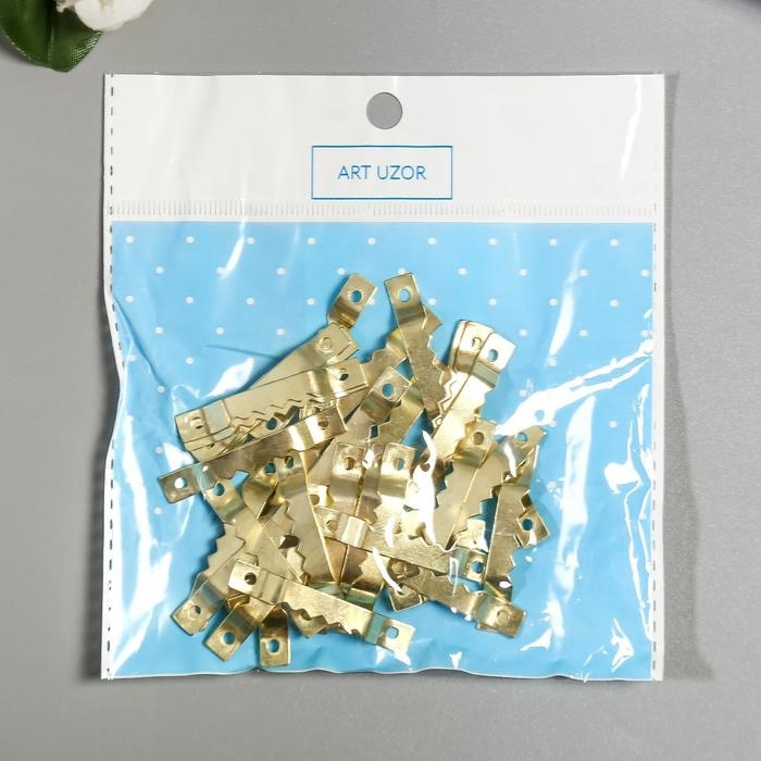 Зубчатая подвеска для картин, фоторамок металл (набор 40 шт) золото 4х0,5 см