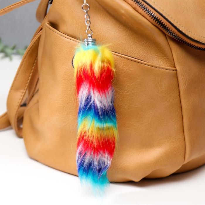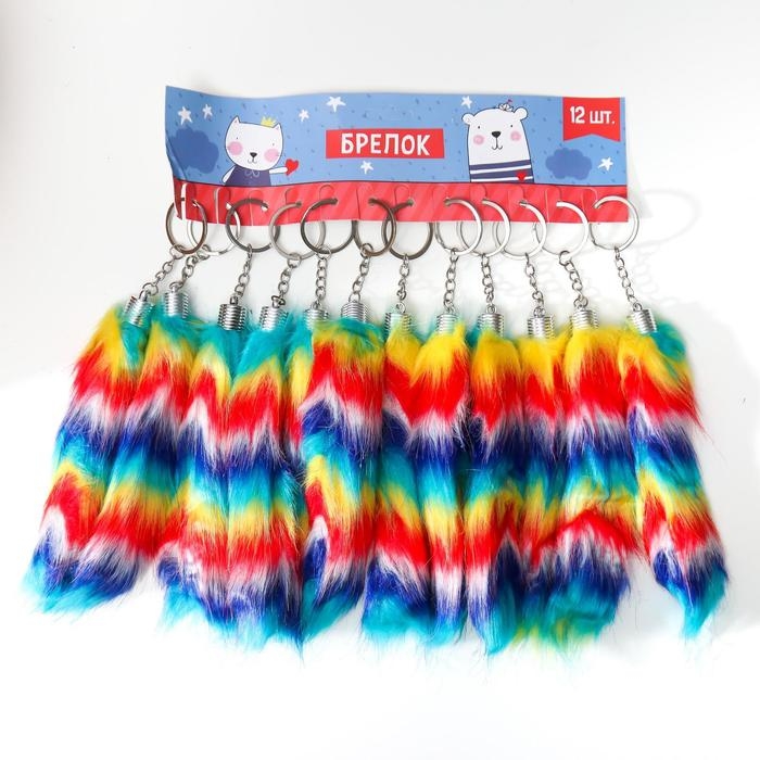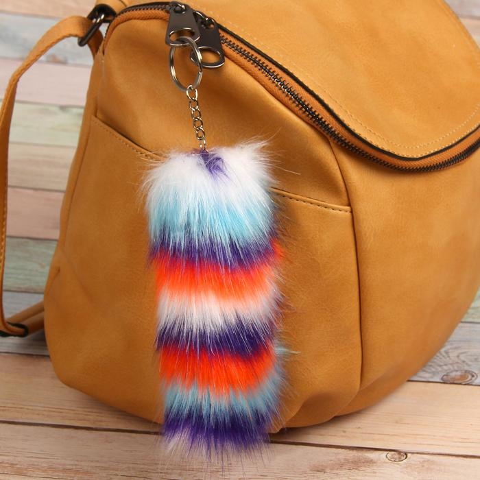 Пушистик на кольце "Полосатый яркий хвостик" 17х6,5х6,5 см МИКС