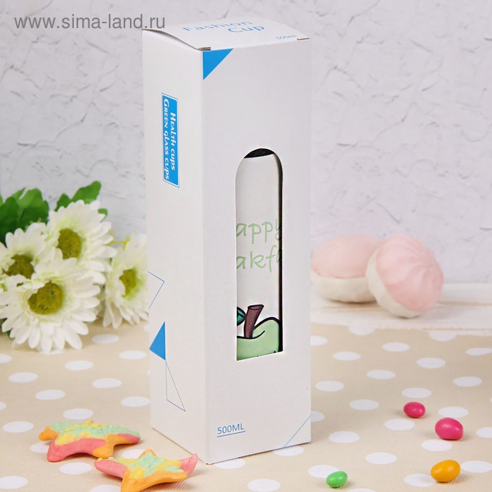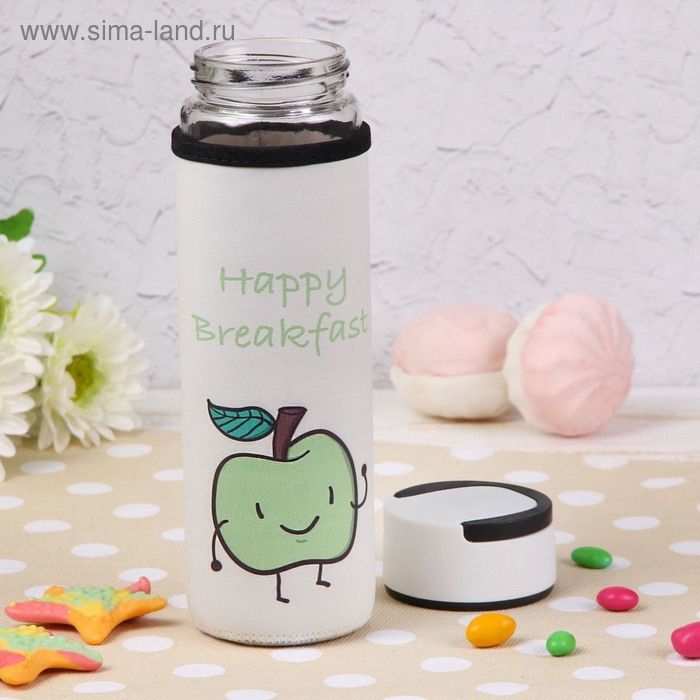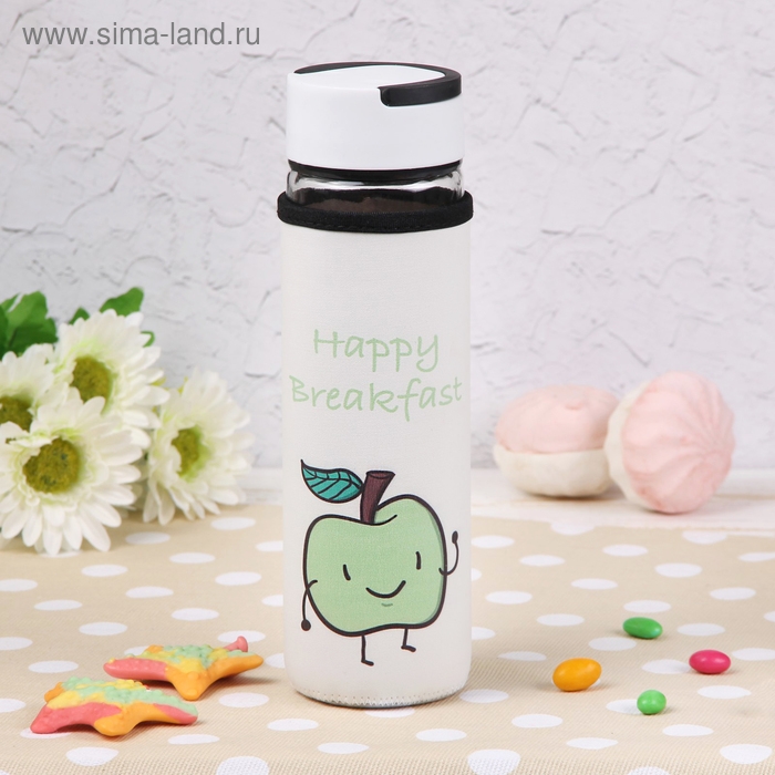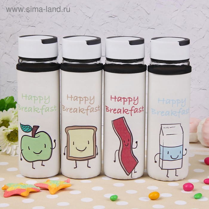 Бутылка для воды стеклянная с ручкой в чехле «Завтрак», 500 мл, h=23,5 см, рисунок МИКС