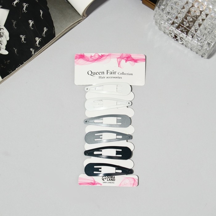 Невидимка для волос "Провижн" (набор 6 шт) 5 см, чёрно-белый