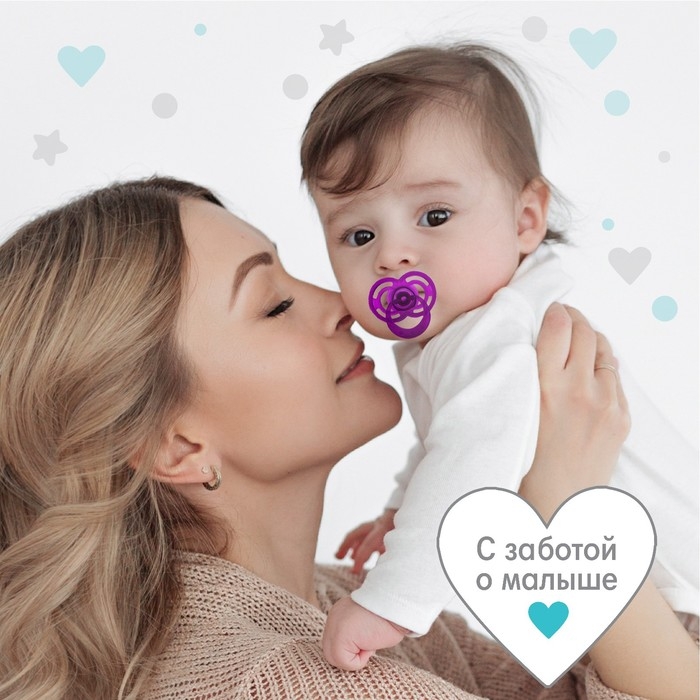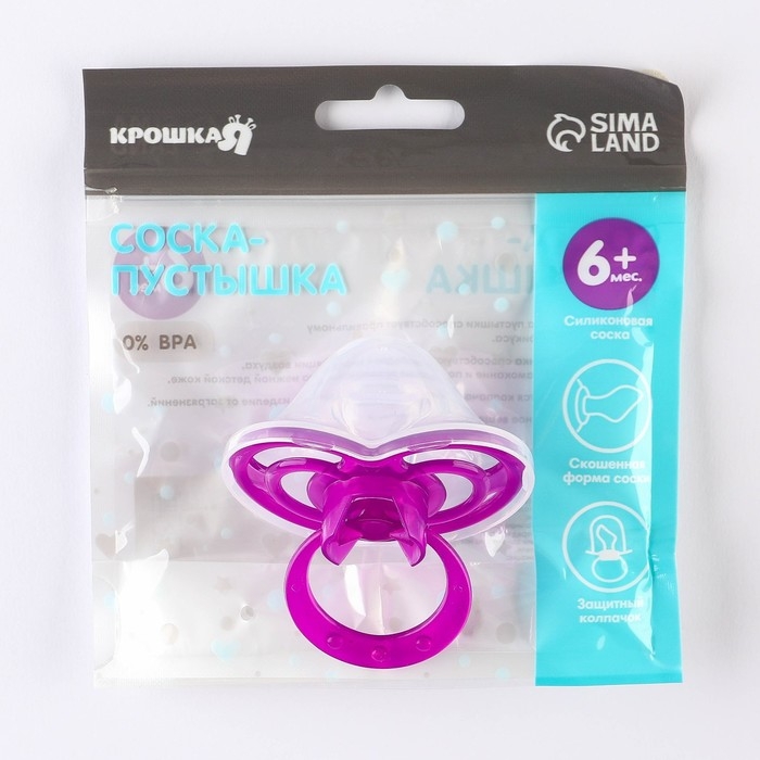 Соска - пустышка силиконовая ортодонтическая «Бантик», от 6 мес., с колпачком, цвет фиолетовый
