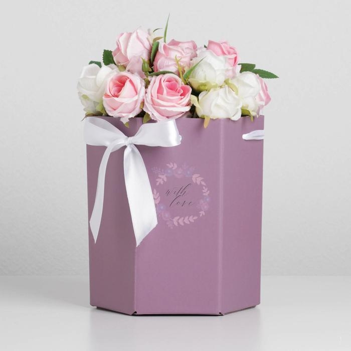 Переноска - шестиугольник для цветов «С любовью!», розовая, 15 х 35 х 15 см