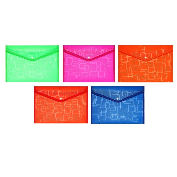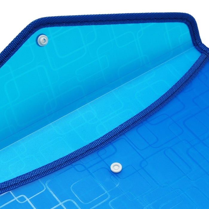 Папка-конверт на кнопке А4, 330 мкм, Calligrata "Квадраты", обшитая, с текстильной вставкой, полупрозрачный, МИКС