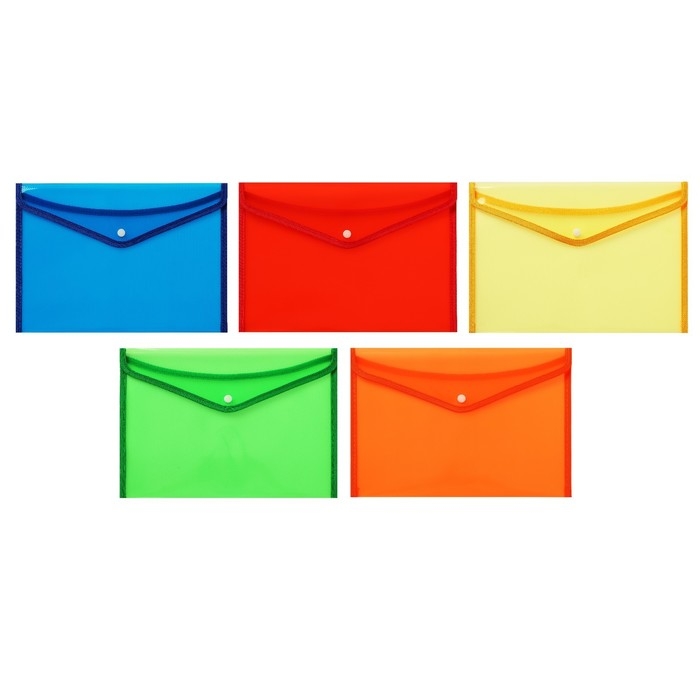 Набор папок-конвертов на кнопке 12 штук, А4, 180 мкм, Calligrata Neon, полупрозрачные, неоновый МИКС