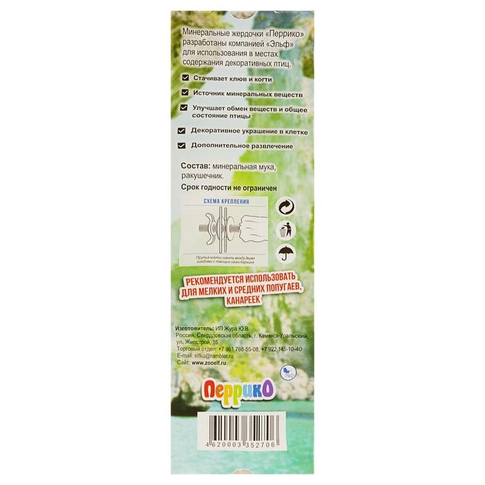 Минеральные жердочки Перрико "Морской Риф" для птиц помогут восполнить недостаток полезных веществ в корме, который вы даёте своему пернатому питомцу.