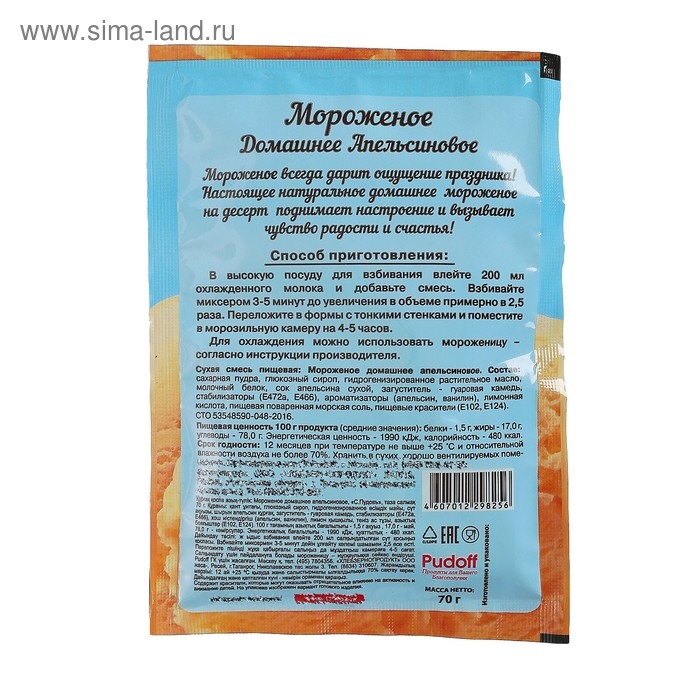 Смесь для приготовления мороженого «С. Пудовъ», апельсиновое, 70 г