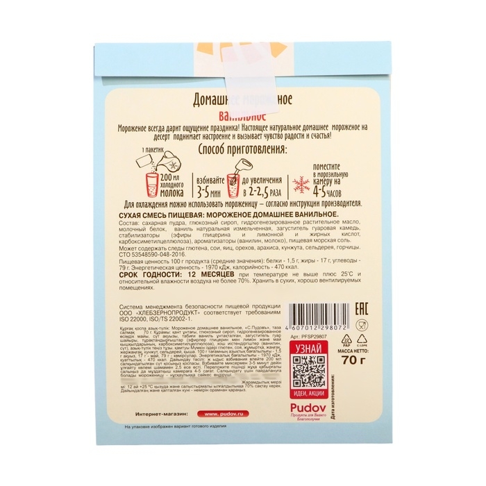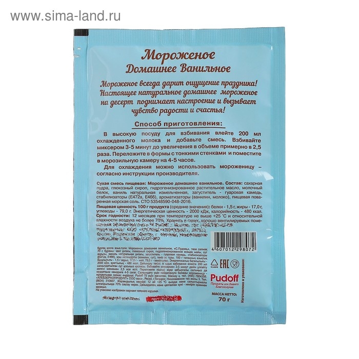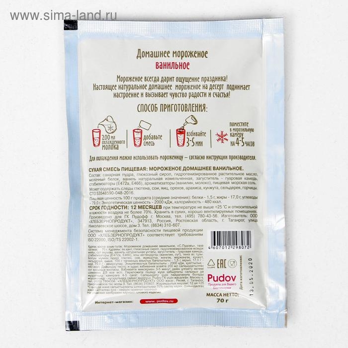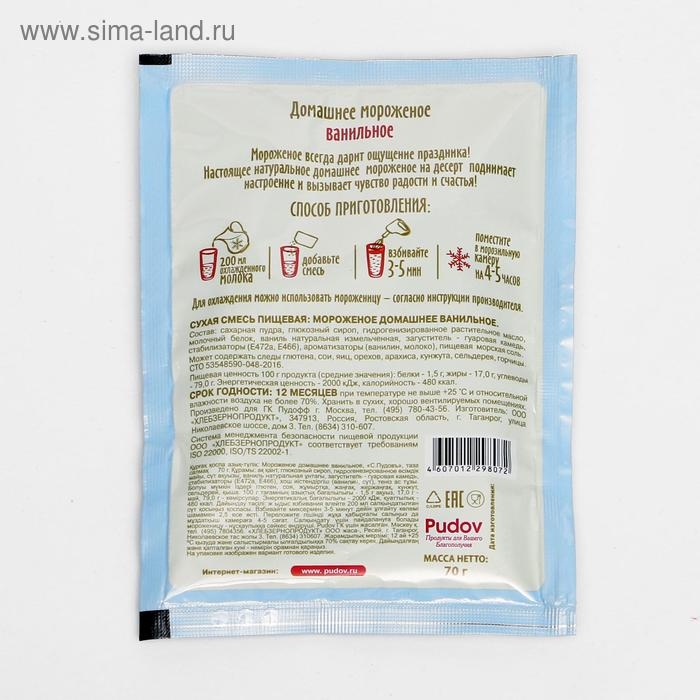 Смесь для приготовления мороженого «С. Пудовъ», ванильное, 70 г
