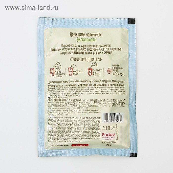 Смесь для приготовления мороженого «С. Пудовъ», фисташковое, 70 г
