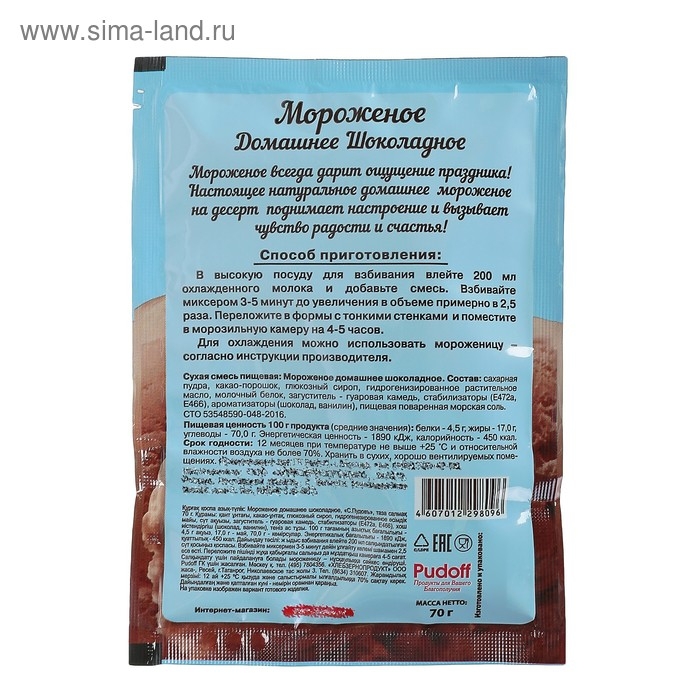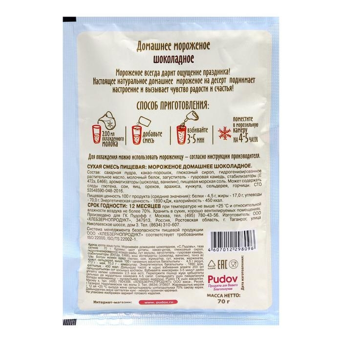 Смесь для приготовления мороженого «С. Пудовъ», шоколадное, 70 г