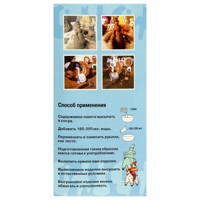 Глина для лепки натуральная голубая 1000 г, в порошке, Calligrata, самоотвердевает (подходит для обжига)