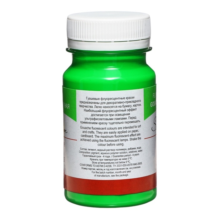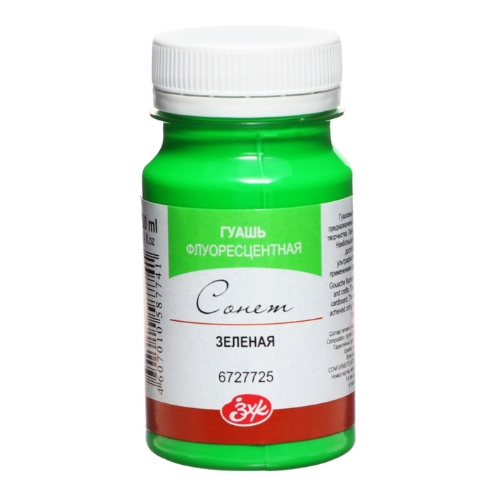 Гуашь художественная в банке 100 мл, Fluo, ЗХК "Сонет", зелёная флуор (6727725)