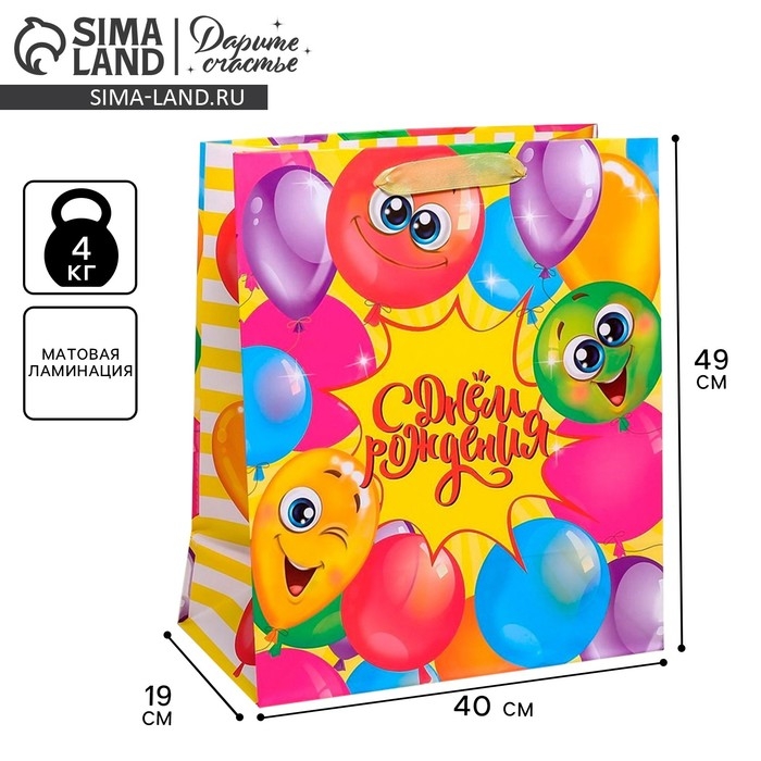 Пакет подарочный ламинированный вертикальный, упаковка, «С днём Рождения!», XL 40 х 49 х 19 см