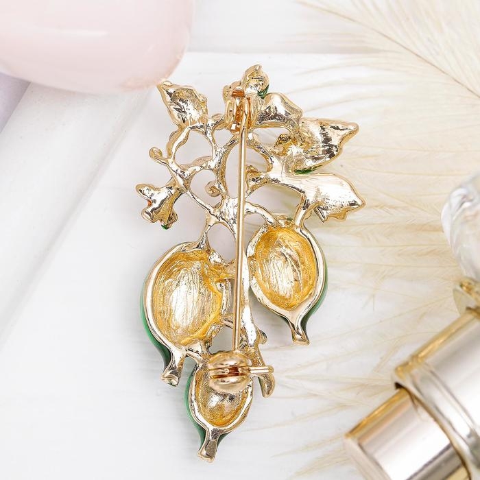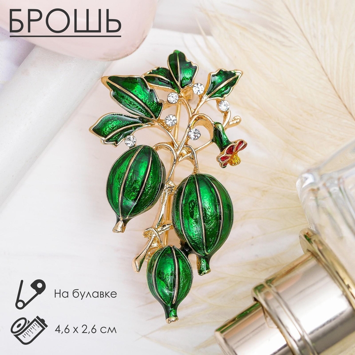Брошь «Вишня» с листочками, цвет красно-зелёный в золоте