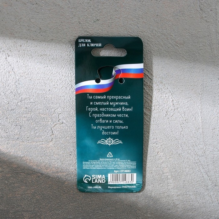 Брелок для ключей металлический «23 февраля», 6 х 20 см