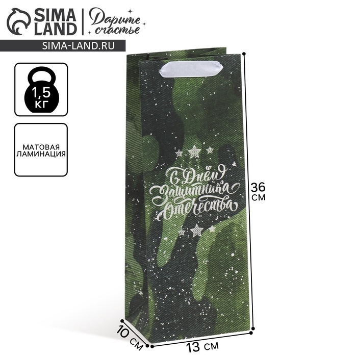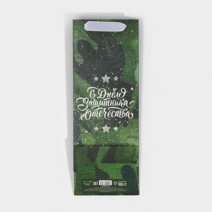 Пакет подарочный под бутылку, упаковка, «С днём защитника Отечества», 36 х 13 х 10 см