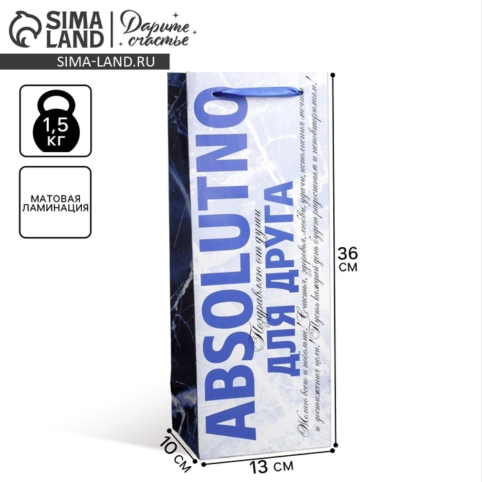 Пакет подарочный под бутылку, упаковка, «Абсолютно», 36 х 13 х 10 см