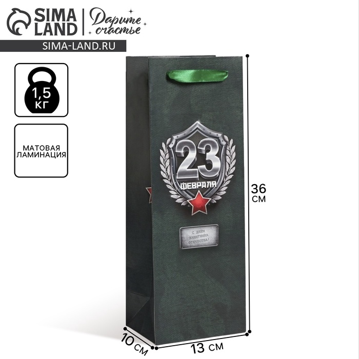 Пакет подарочный под бутылку, упаковка, «23 Февраля», 36 х 13 х 10 см