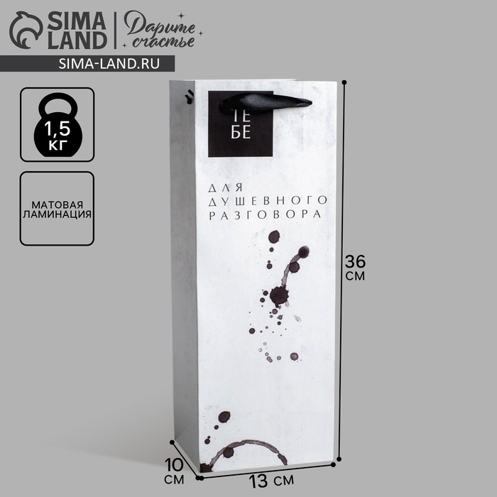 Пакет подарочный под бутылку, упаковка, «От души», 36 х 13 х 10 см