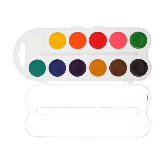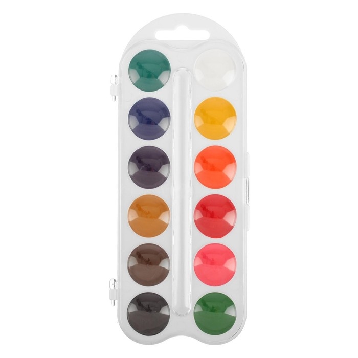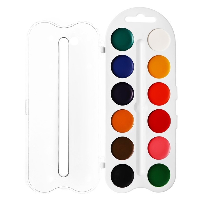 Краски акварельные, в кюветах, с кистью, 12 цветов