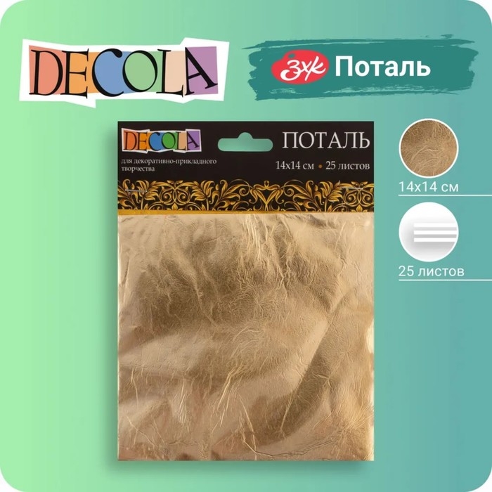 Поталь в книжке для золочения имитация золота №2.5, 14 х 14 см, 25 листов, (плотность 0,03 мкн), ЗХК "Decola", 2061291388