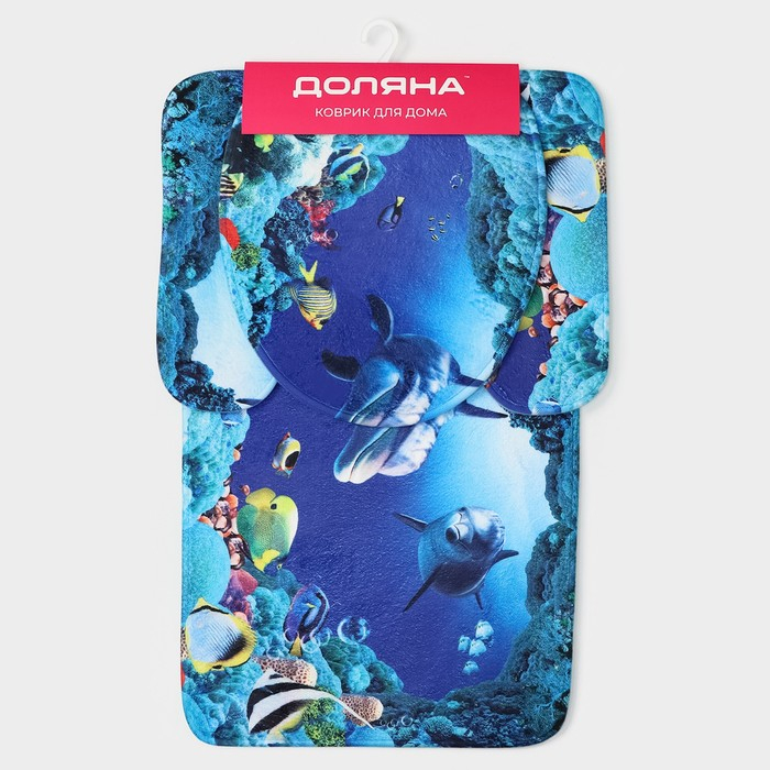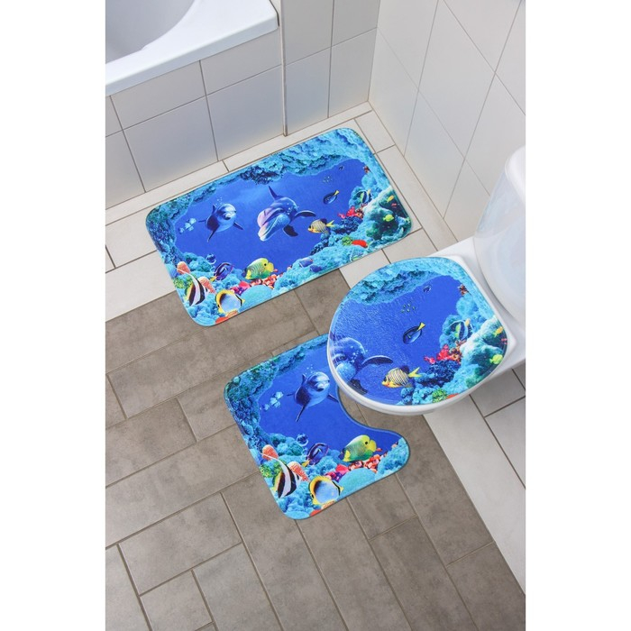 Коврики для ванной и туалета Доляна «Дельфин», 3 шт: 35×39, 40×50, 45×75 см