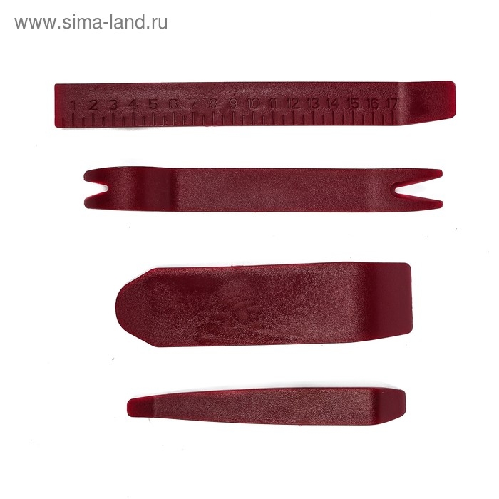 Комплект инструментов для разборки салона автомобиля позволяет аккуратно, без повреждения элементов, провести демонтаж панелей дверей, потолка, торпедо и других пластиковых частей внутренней отделки, а также магнитол и любых других компонентов. В наборе 4 предмета — вилка, лопатки