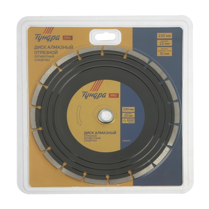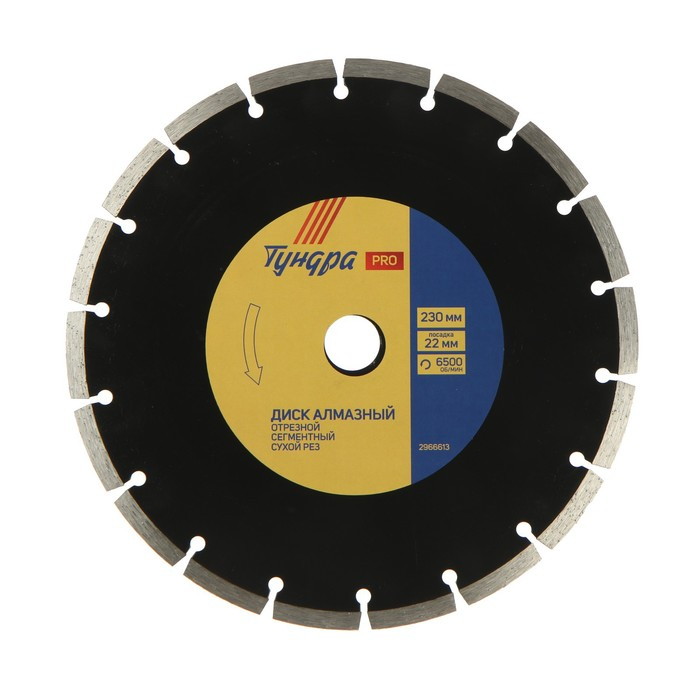 Диск алмазный отрезной ТУНДРА ПРОФИ, повышенный ресурс, сегментный, сухой рез, 230 х 22 мм