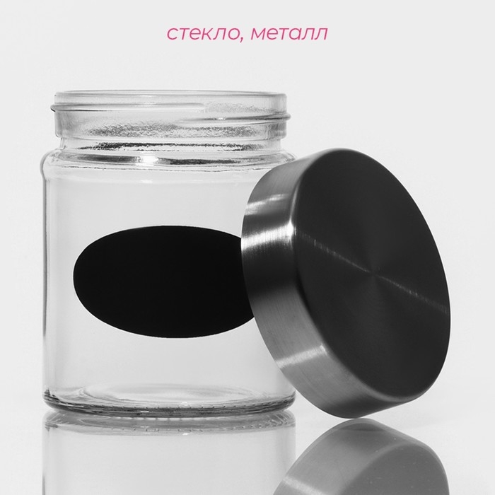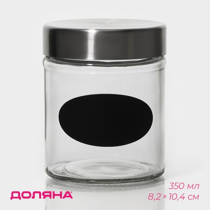 Банка стеклянная для хранения сыпучих продуктов с местом под надпись Доляна «Премиум», 350 мл, 10×8 см, с металлической крышкой
