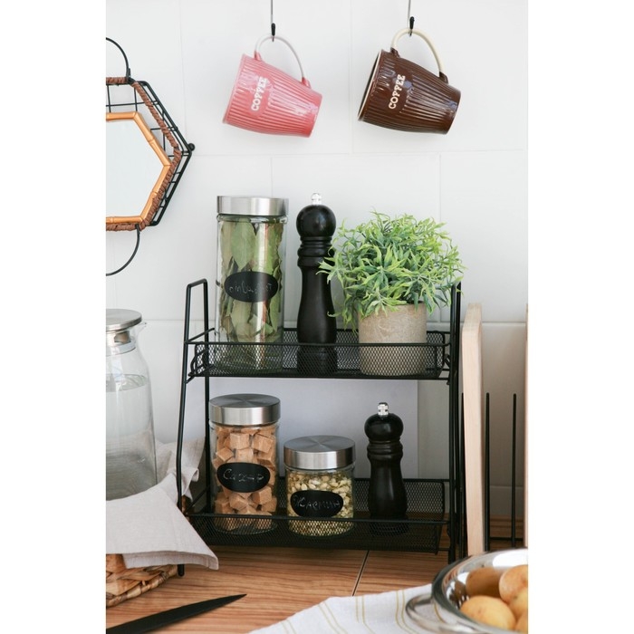 Набор банок стеклянных для сыпучих продуктов «Трио», 3 предмета: 350/550/750 мл, 9,5×10,5/15/19,8 см, цвет чёрный