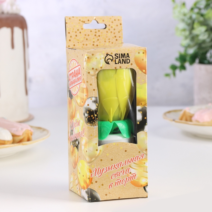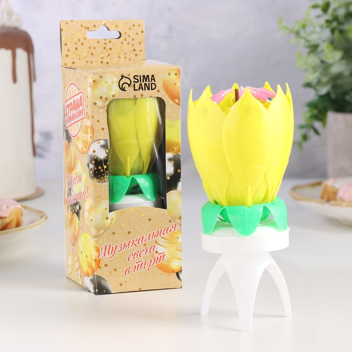 Свеча для торта музыкальная "Тюльпан", жёлтая, 12×5 см