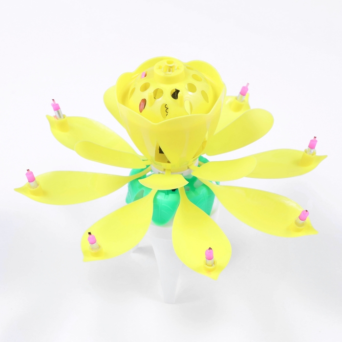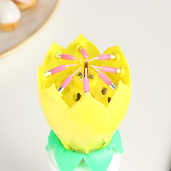 Свеча для торта музыкальная "Тюльпан", крутящаяся, жёлтая, 14,5×6 см