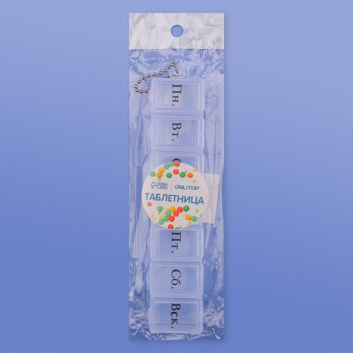 Таблетница «На неделю», с цепочкой, русские буквы, 15 × 3,3 × 2 см, 7 секций, цвет МИКС