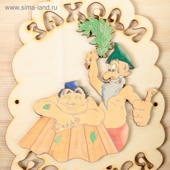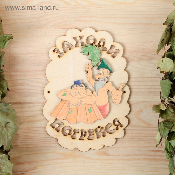 Табличка для бани "Заходи погрейся", дед парит, 18.5х13см