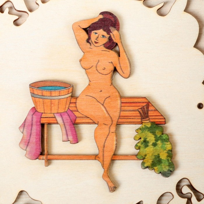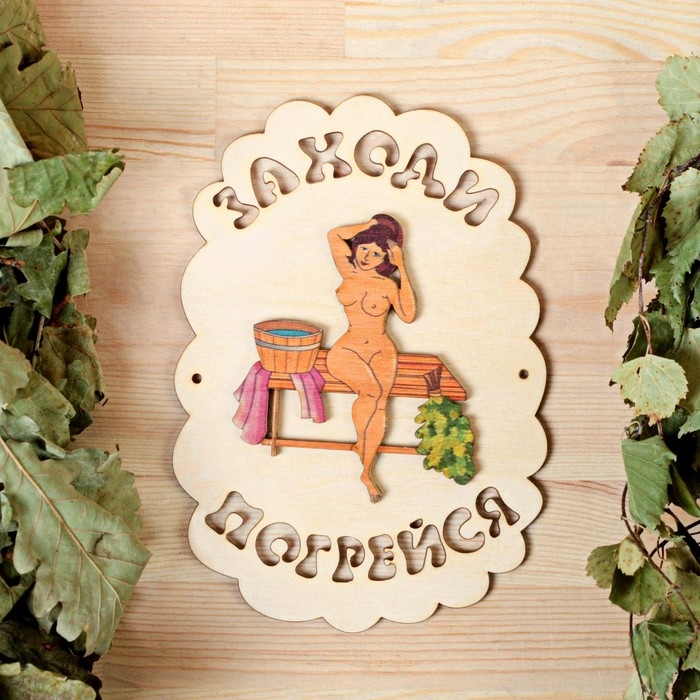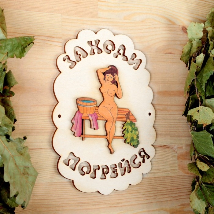 Табличка для бани "Заходи погрейся", девушка, 18.5х13см