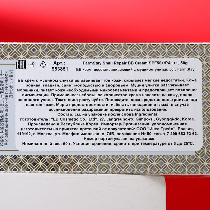 BB крем для лица FarmStay «Восстанавливающий», с муцином улитки, 50 мл