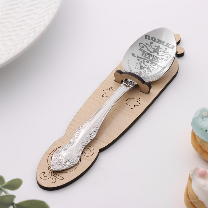 Чайная ложка из нержавеющей стали с гравировкой. Станет отличным небольшим презентом.