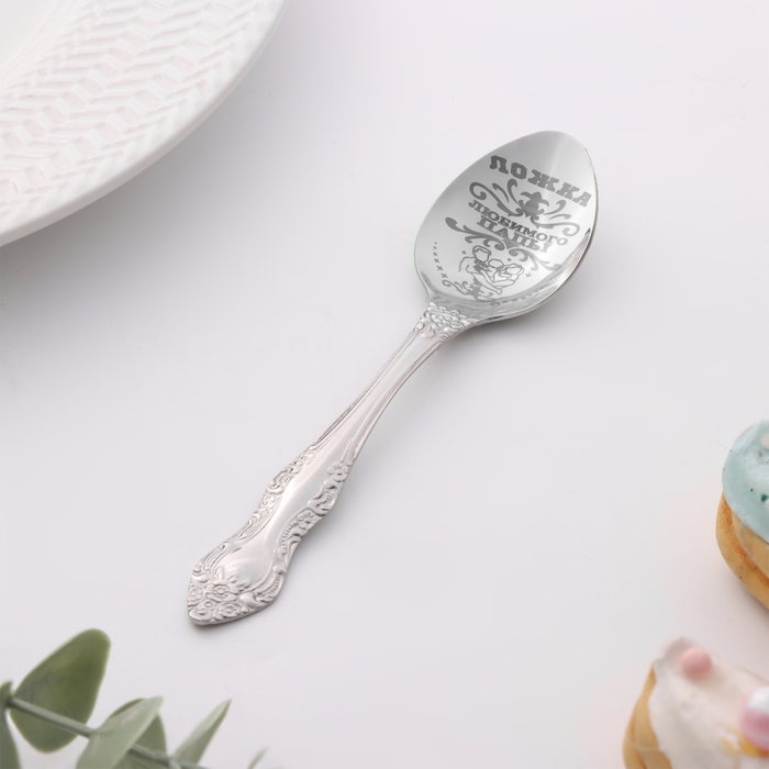 Ложка чайная с гравировкой «Любимого папы», h=14см.