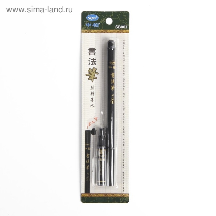 Кисть для каллиграфии, чёрная, заправляемая, с запасными чернилами