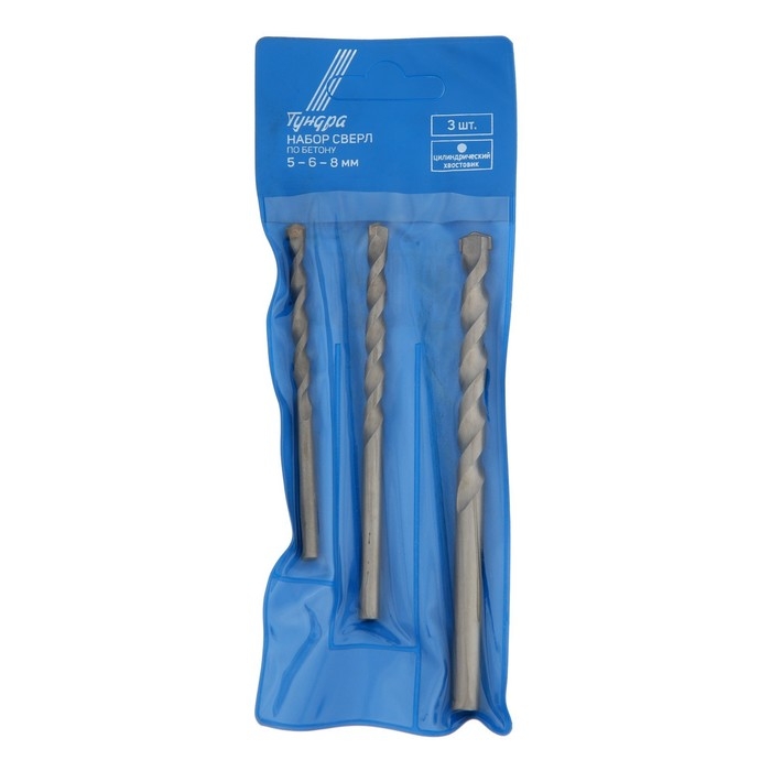 Набор сверл по бетону ТУНДРА, цилиндрический хвостовик, 5-6-8 мм, 3 шт.