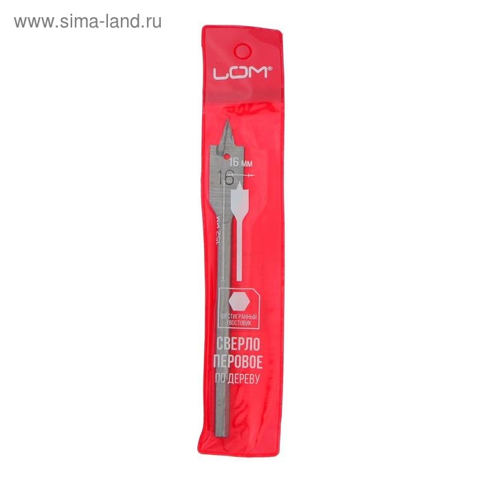 Сверло по дереву перовое ЛОМ, шестигранный хвостовик, 16 х 152 мм
