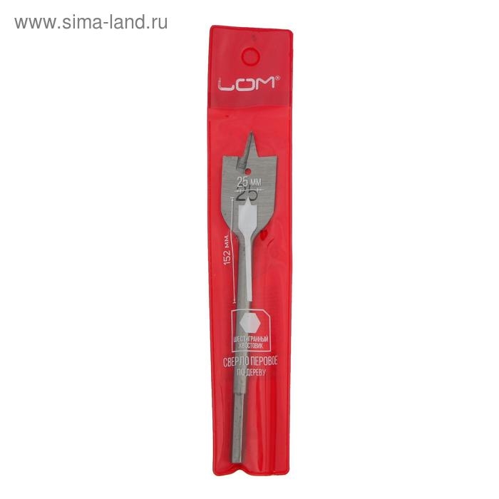 Сверло по дереву перовое ЛОМ, шестигранный хвостовик, 25 х 152 мм