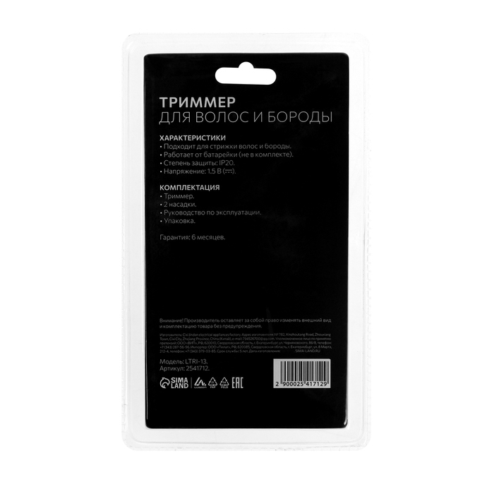 Триммер для волос и бороды Luazon LTRI-13, 2 насадки, 1*АА (не в комплекте), чёрный