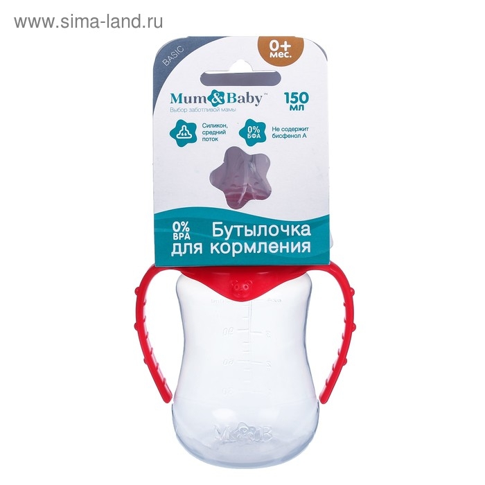 Бутылочка для кормления, классическое горло, приталенная, с ручками, 150 мл., от 0 мес., цвет красный