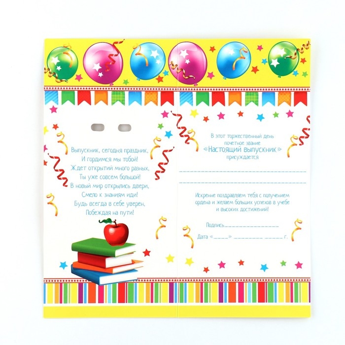 Выпускной - это особое событие для каждого ребёнка. Сувенир изготовлен из лёгкого пластика и декорирован яркой текстильной лентой. Изделие дополнено булавкой на оборотной стороне, так что его сразу можно надеть на счастливого получателя. Каждый значок на булавке с лентой прикреплен к яркой, нарядной подложке - открытке, ребенку будет вдвойне приятно получить такой презент