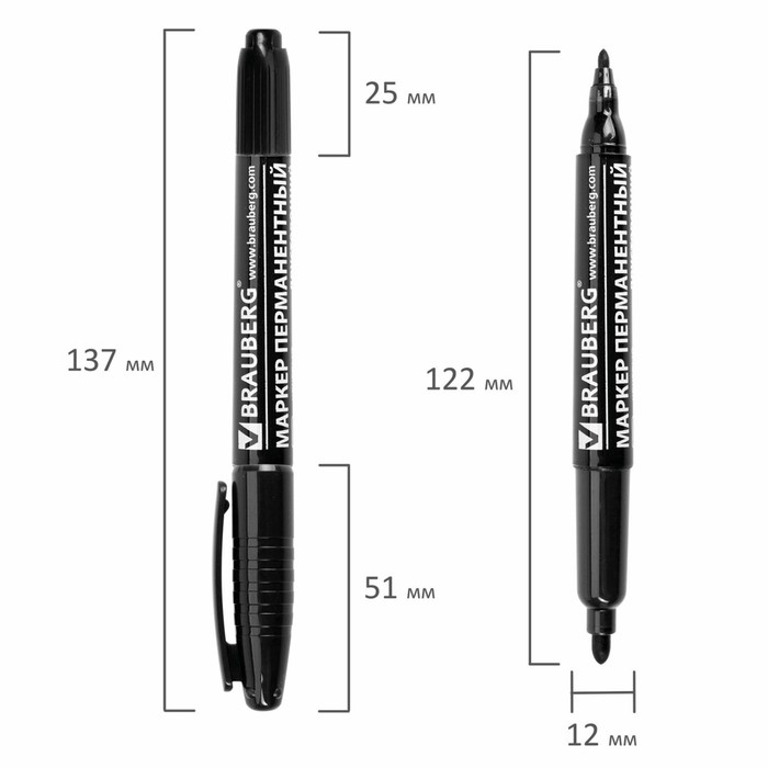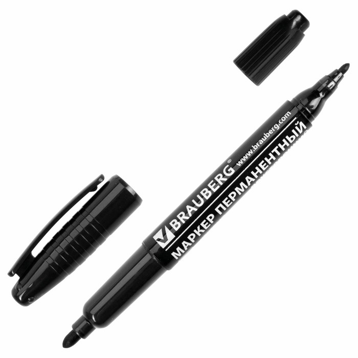 Маркер перманентный двухсторонний круглый 2.0-4.0 мм, BRAUBERG, чёрный