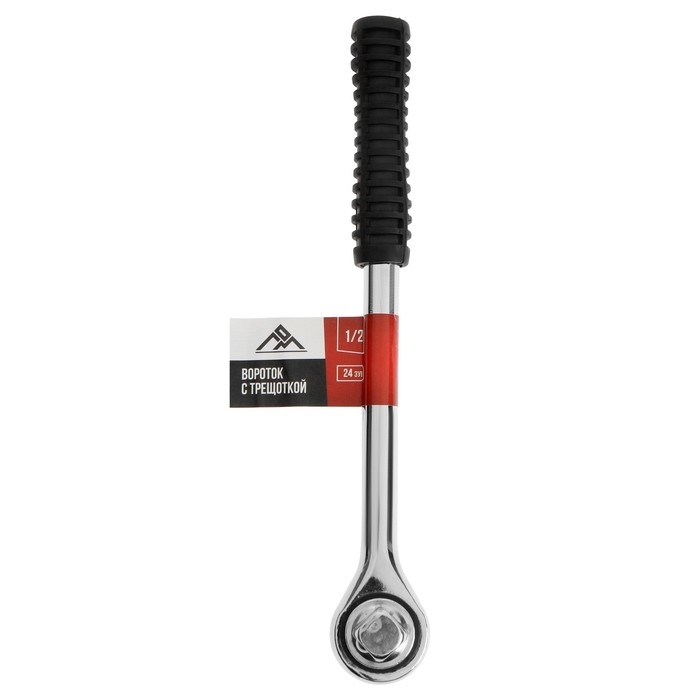 Вороток с трещоткой ТУНДРА, CrV, квадрат 1/2", 2К рукоятка, 24 зуба, 250 мм